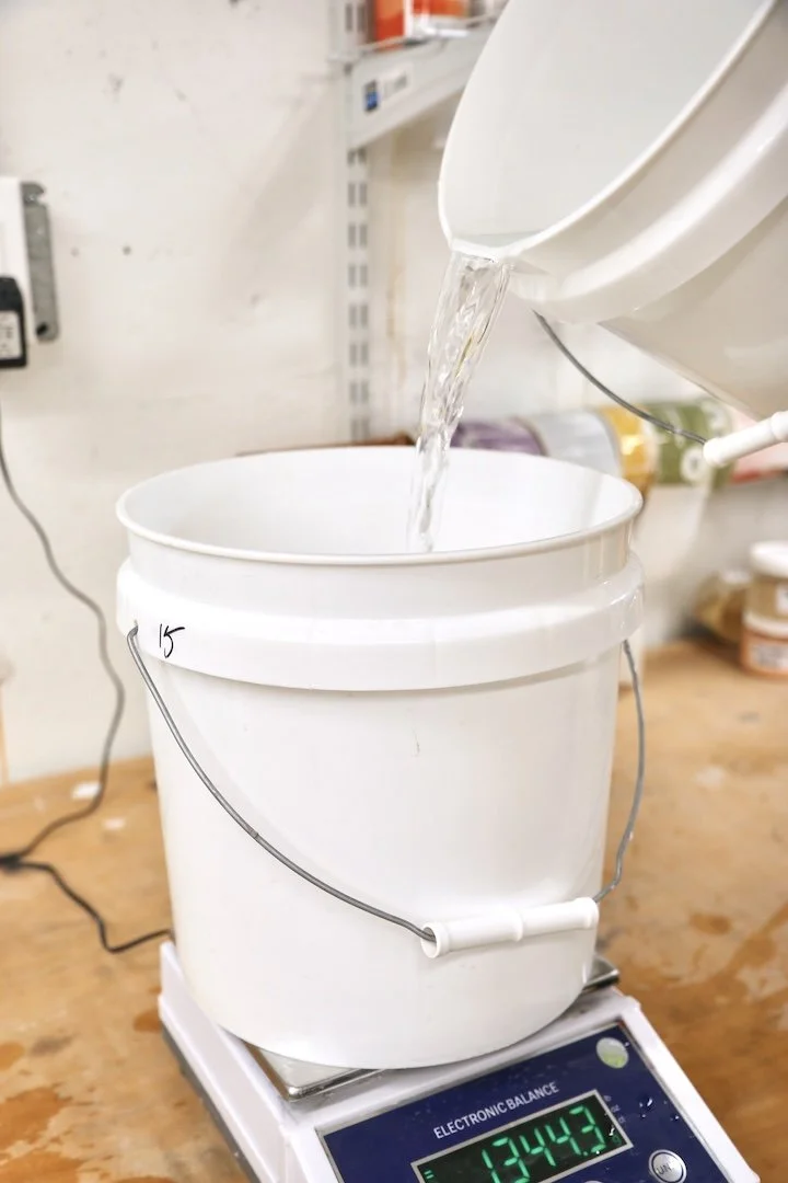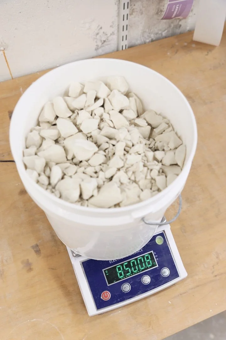 For this post, I mixed a (not full) 5 gallon bucket of slip. I measured and recorded everything. I weighed out: