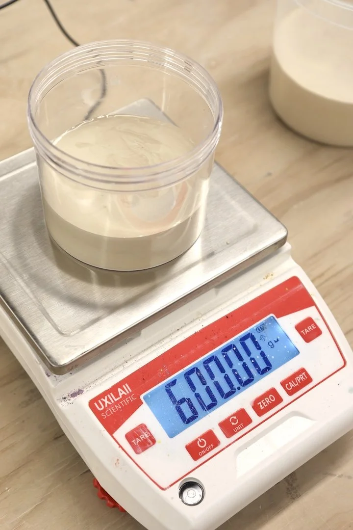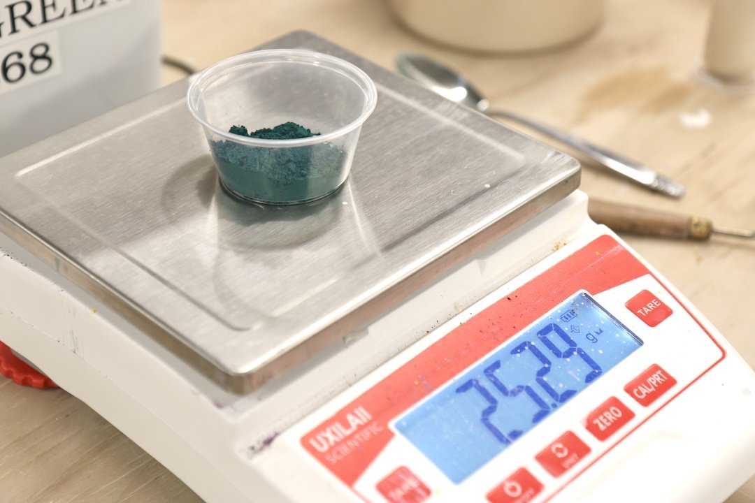 Getting repeatable colors requires me to know exactly how much dry material I mix with water to create my slip base.