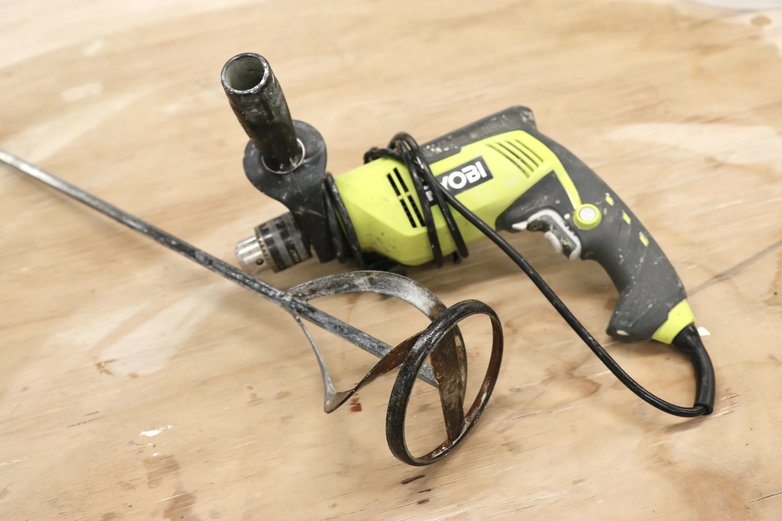 I use a paddle and plug in electric drill to mix large batches.